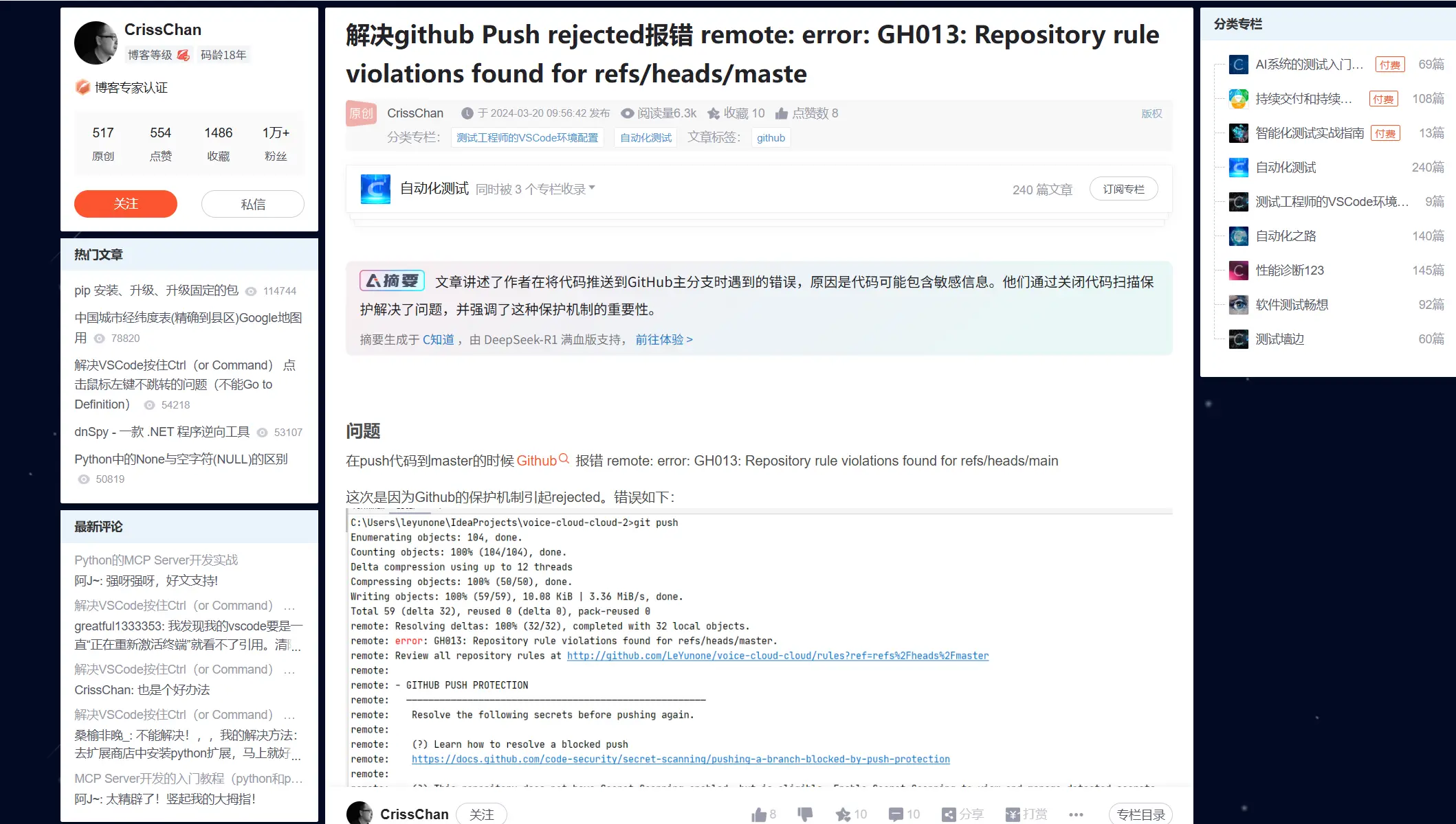 解决github Push rejected报错解决github Push rejected报错 remote: error: GH013: Repository rule violations found for refs/heads/maste