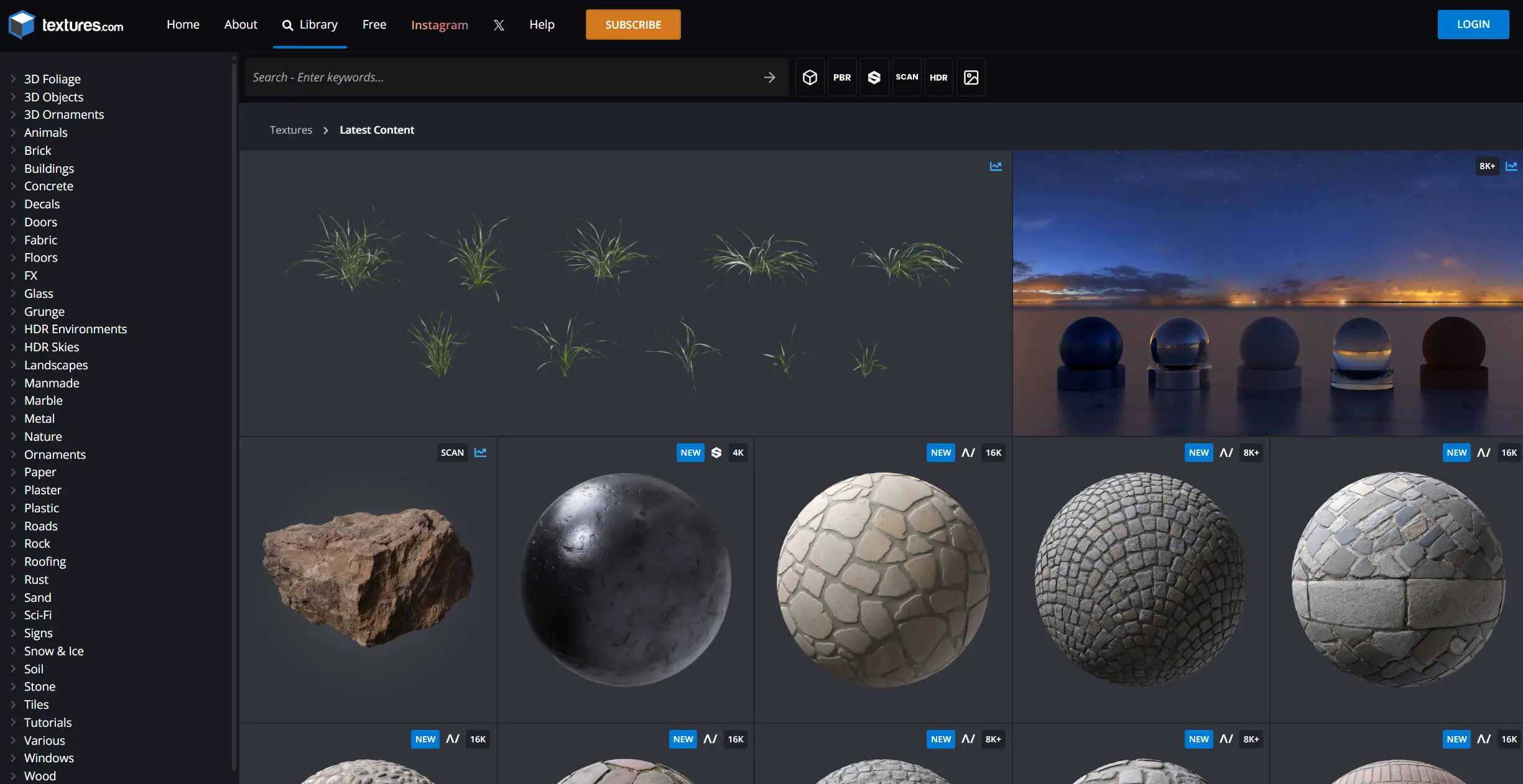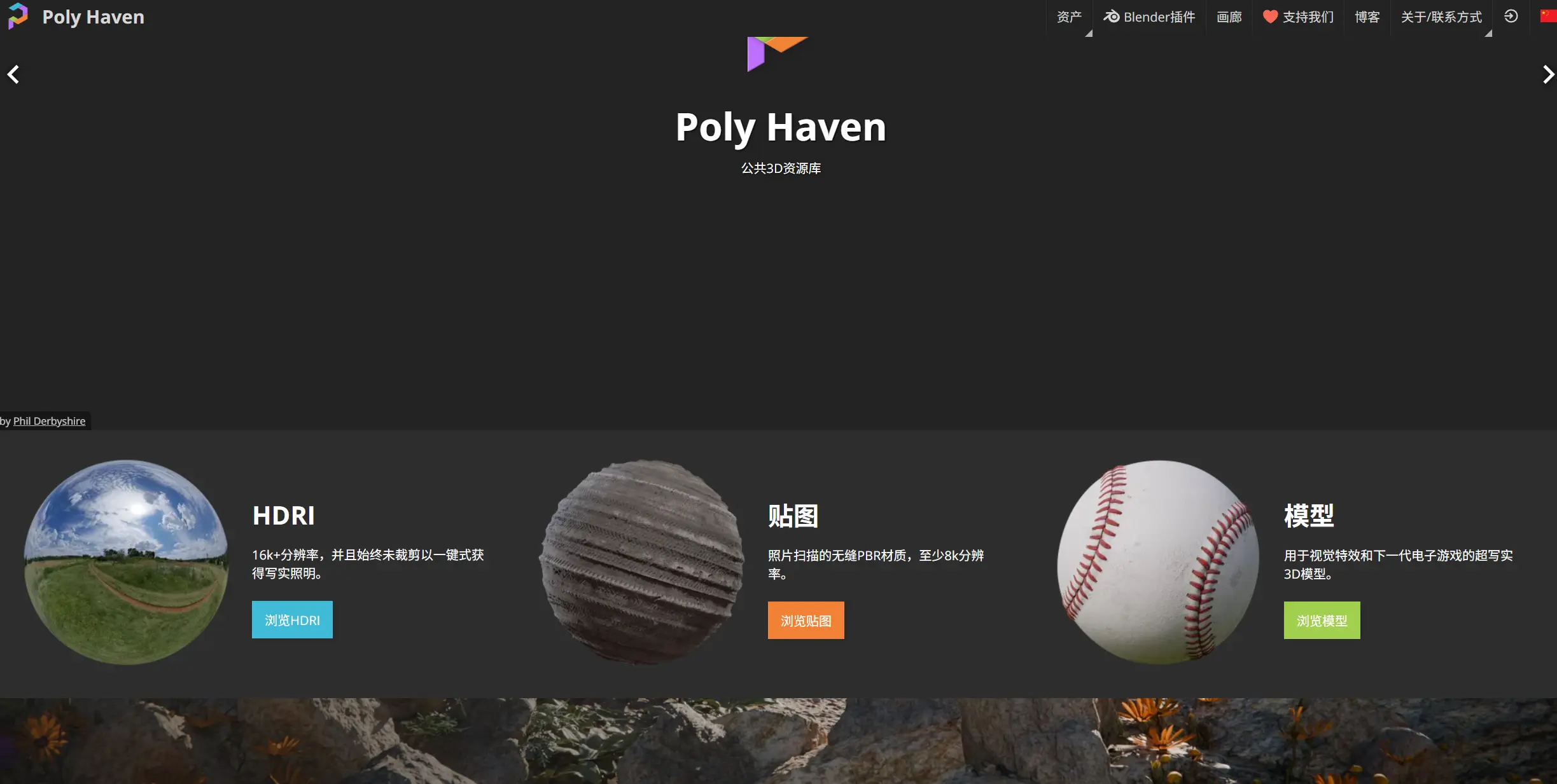 公共3D资源库有比较多的HDRI贴图,高分辨率PBR贴图,和一些3D模型下载