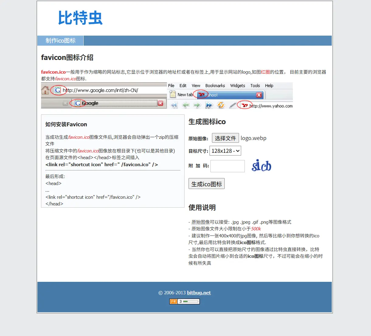 比特虫favicon可以把图片转换成比较小的ico图标用于网站标签favicon