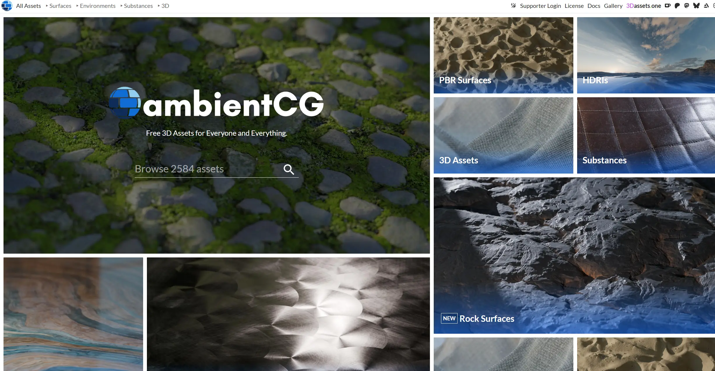 AmbientCG主要是材质很多,如果在左边的公共3D资源库(Polyhaven)找不到,再来这里找