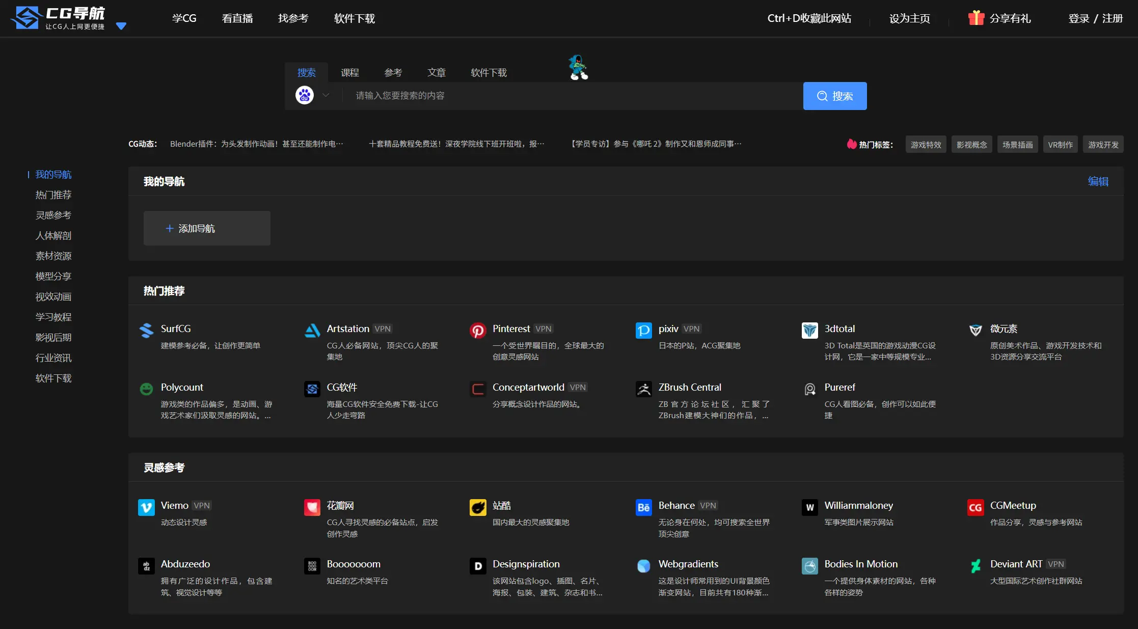 CG导航和左边的CG软件是一家人,可以快速导航到需要的网站