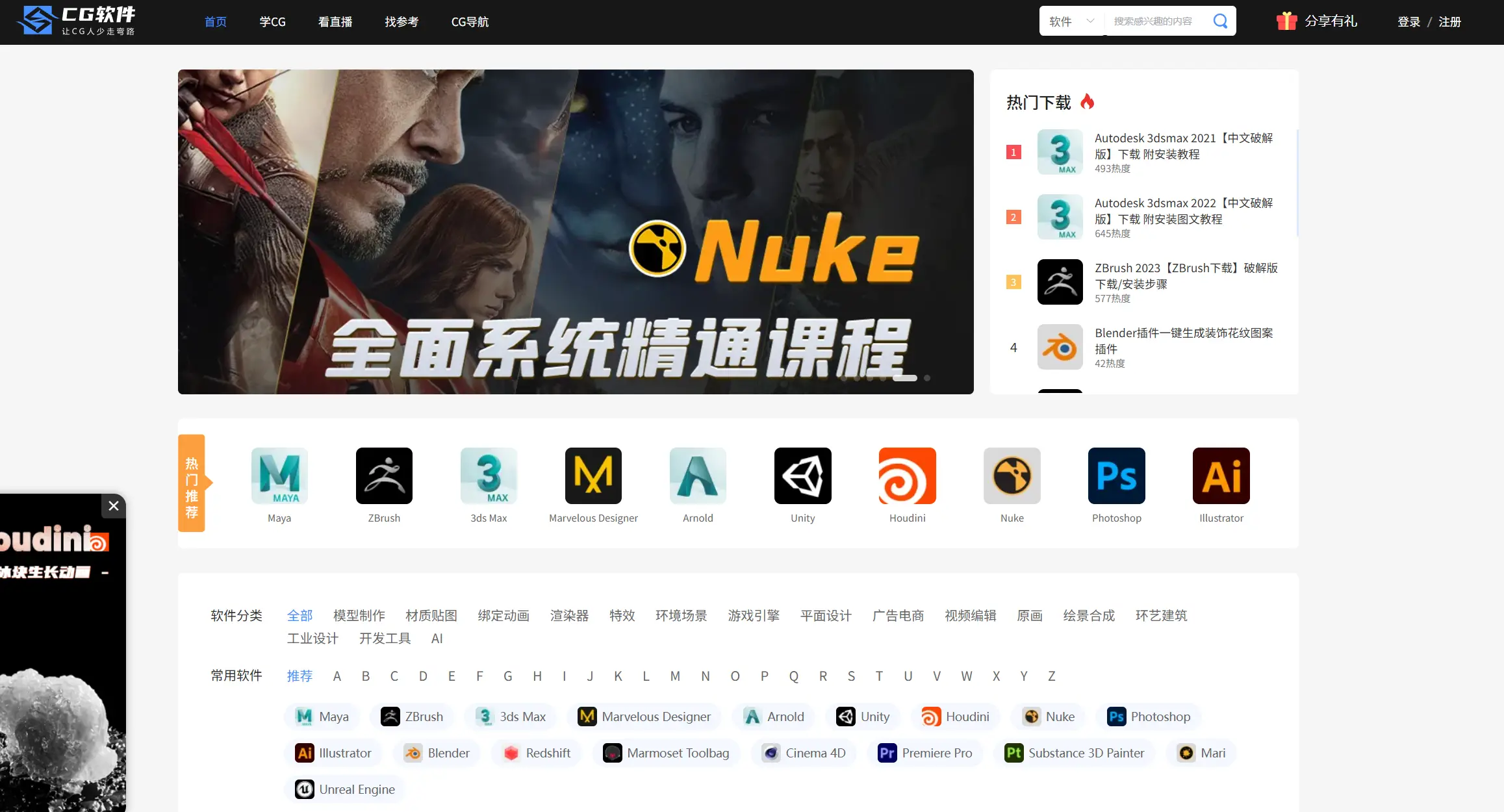 CG软件可以下载很多3DCG行业的软件,比如PS,Zbrush,主要白嫖软件