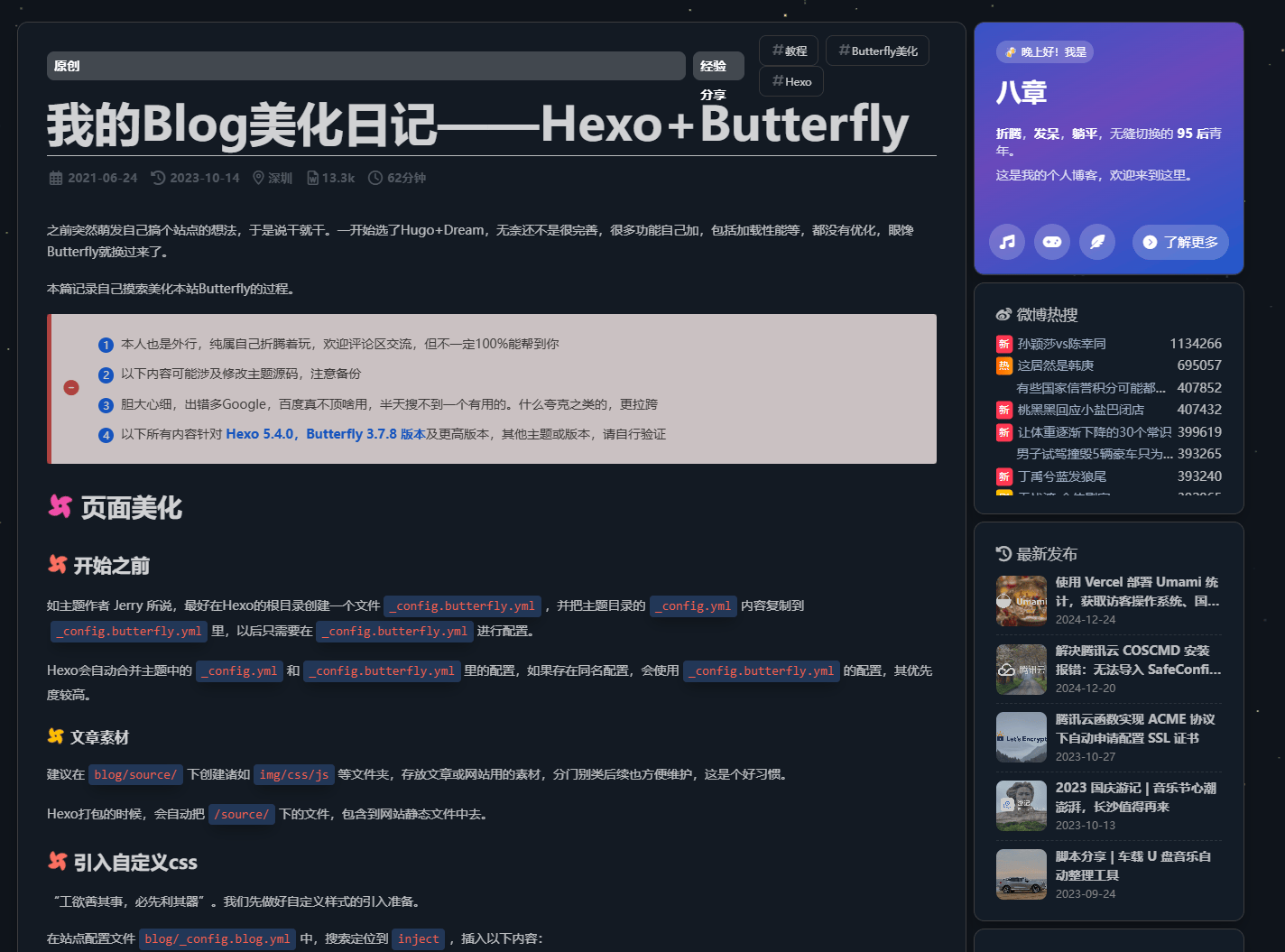 Butterfly主题美化我个人感觉是比较系统性的美化教学了,大佬的美化教程链接也贴出来了